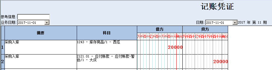 例:某单位在2017年第十期 采购 西瓜100公斤 但是本月没有收到发票 。