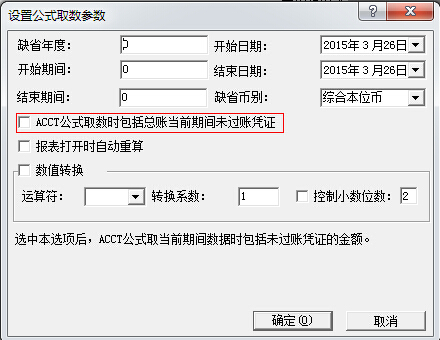 3、利润表——工具——公式取数参数,可以用来查看其他期间的数据,其中,红框的选项注意,若勾选则能查看总账当前期间未过账过账凭证。。